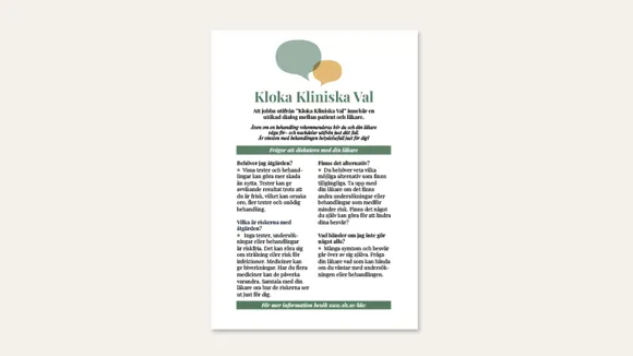 Informationsmaterial om Kloka Kliniska Val som vänder sig till professionen och patienter.